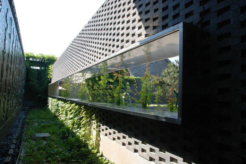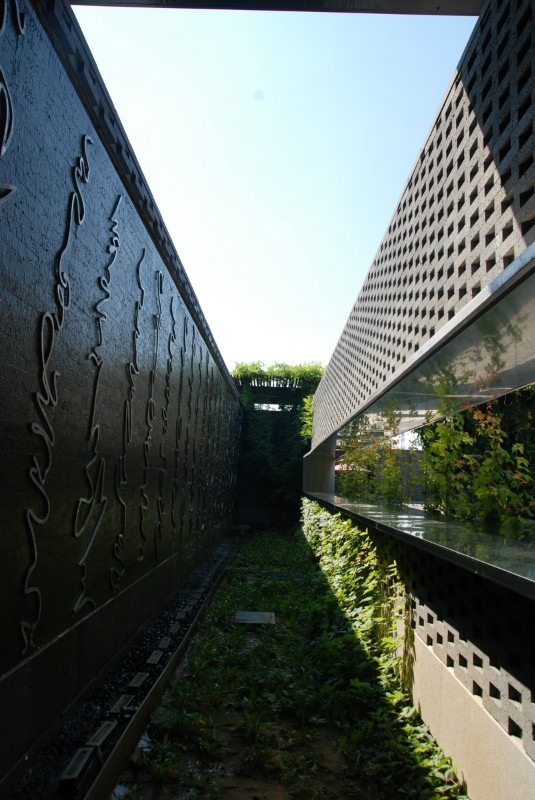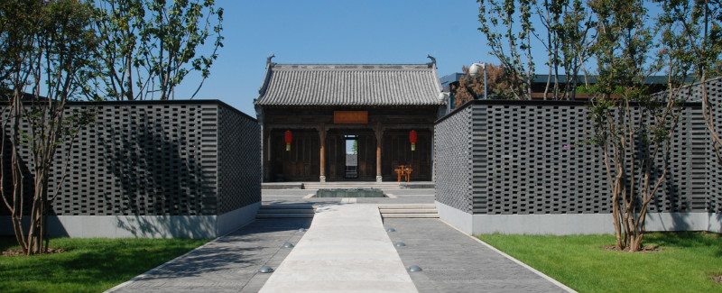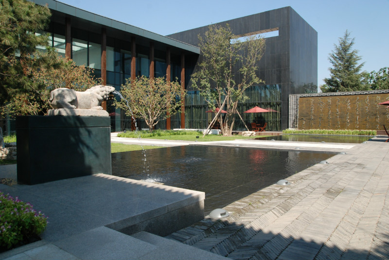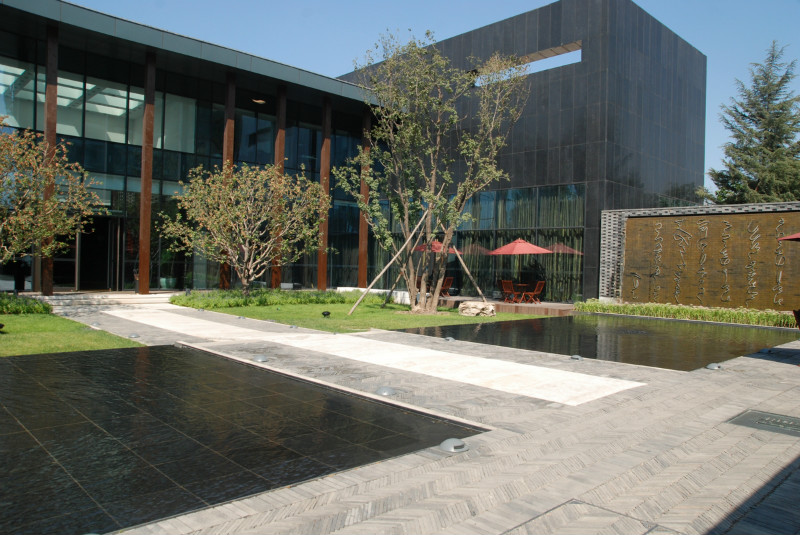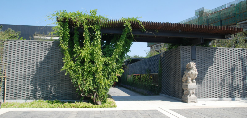 如園的建筑立面采用中國傳統建筑的經典三段式,大屋頂、屋身和基座,而這當中最為精華、最能體現中國傳統特質的則是坡屋頂。《詩經》有云:“如跂斯翼,如矢斯棘,如鳥斯革,如翚斯飛”。如園的屋頂正是由中國古建中的重檐頂提煉而來。其坡度平緩,上檐坡度18度,下檐坡度12度;出檐深遠,出挑墻面1.4米;上檐直線與曲線巧妙結合,成向上微翹的飛檐,不但在功能上增大了10層的采光面積,利于排水,外觀上更為輕盈。